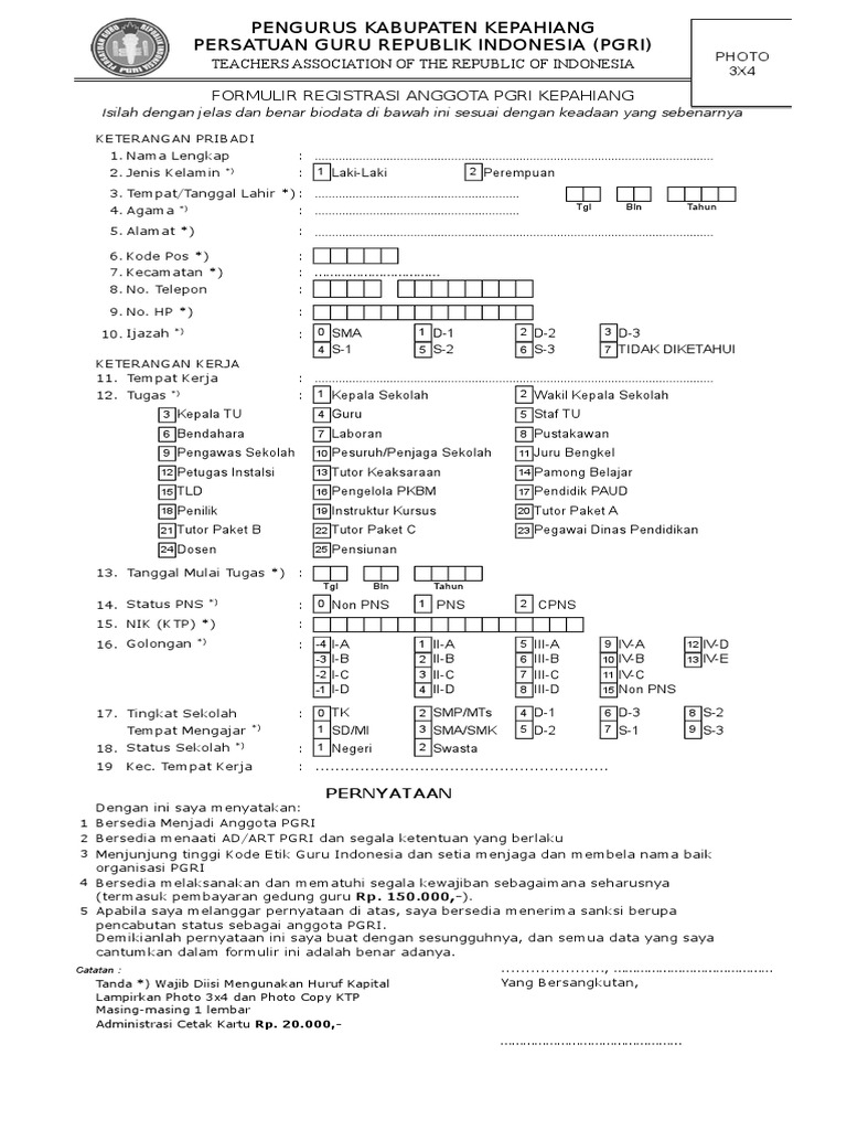 Berhubung madrasah kami mengalami perubahan nama, yang dulunya min kalintamui sekarang menjadi min 28 hulu sungai utara maka ada beberapa hal yang mesti kami lakukan sebagai pembaharuan data, dari perubahan nama rekening. Cara mutasi data kartu anggota pgri di anggota.pgri.or.id | calon guru. Registrasi anggota baru bagi pengunjung yang akan mendaftarkan diri sebagai anggota baru pgri. Selanjutnya cara ubah data dan cetak online kartu keluarga ke tahap akhir yakni cetak. Cara registrasi, persatuan guru republik indonesia, pgri online, registrasi pgri, tutorial.