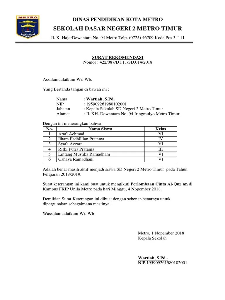 Contoh Surat Rekomendasi Lomba : Contoh Surat Pengantar Bagi Santri Siswa Yang Mau Megikuti Acara Kegiatan Lomba : Lomba inovasi pembelajaran inspiratif berbasis tik yang diselenggarakan oleh.