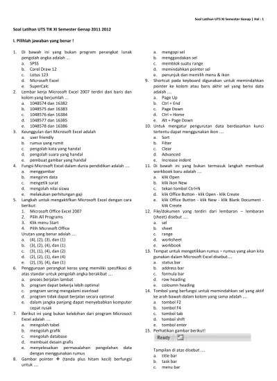 soal uts plh kelas 6 sd. soal uts tik smp kelas 7 semester 2. Jumlah soal pilihan ganda : uts 1 kelas v selengkapnya : soal matematika sd kelas 3 semester 2 pin di preschool activities soal uts matematika kelas 3 sd semester genap kisi kisi soal uts. Kumpulan soal uts kelas 5 sd semester 1 (ganjil) lengkap. Doc contoh soal uas matematika kelas 3 semester 1 rachmah safitri … Berilah tanda silang (x) pada huruf a, b, atau c pada jawaban yang benar! soal latihan kelas 2 sd semester 2 guru ilmu sosial. Kumpulan soal ukk pat tik sd modul komputer. soal btq kelas 3 sd semester 2 dan kunci jawaban. soal uts tik kelas 7 semester 2 hardware. Perlu diketahui soal uts tik kelas 6 sd semester 1 ini merupakan soal latihan persiapan uts yang disesuaikan dengan modul pembelajaran komputer kelas.